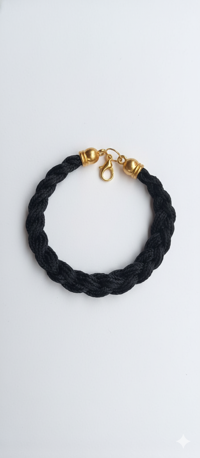 Woven Black Rope Bracelet with Gold Clasp