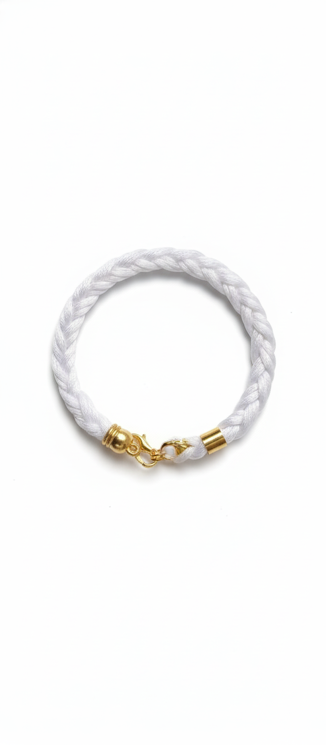 Woven White Rope Bracelet with Gold Clasp