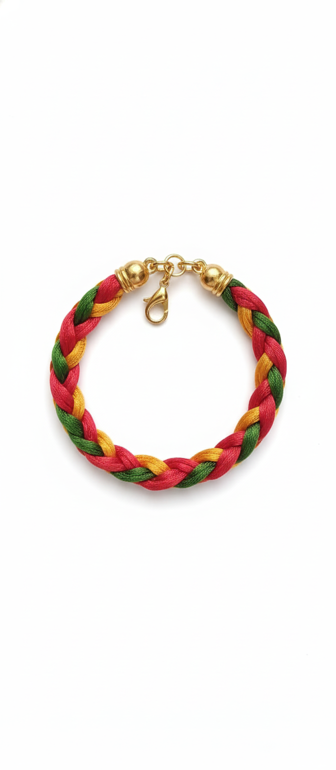 Multi-Color Woven Rope Bracelet with Gold Clasp