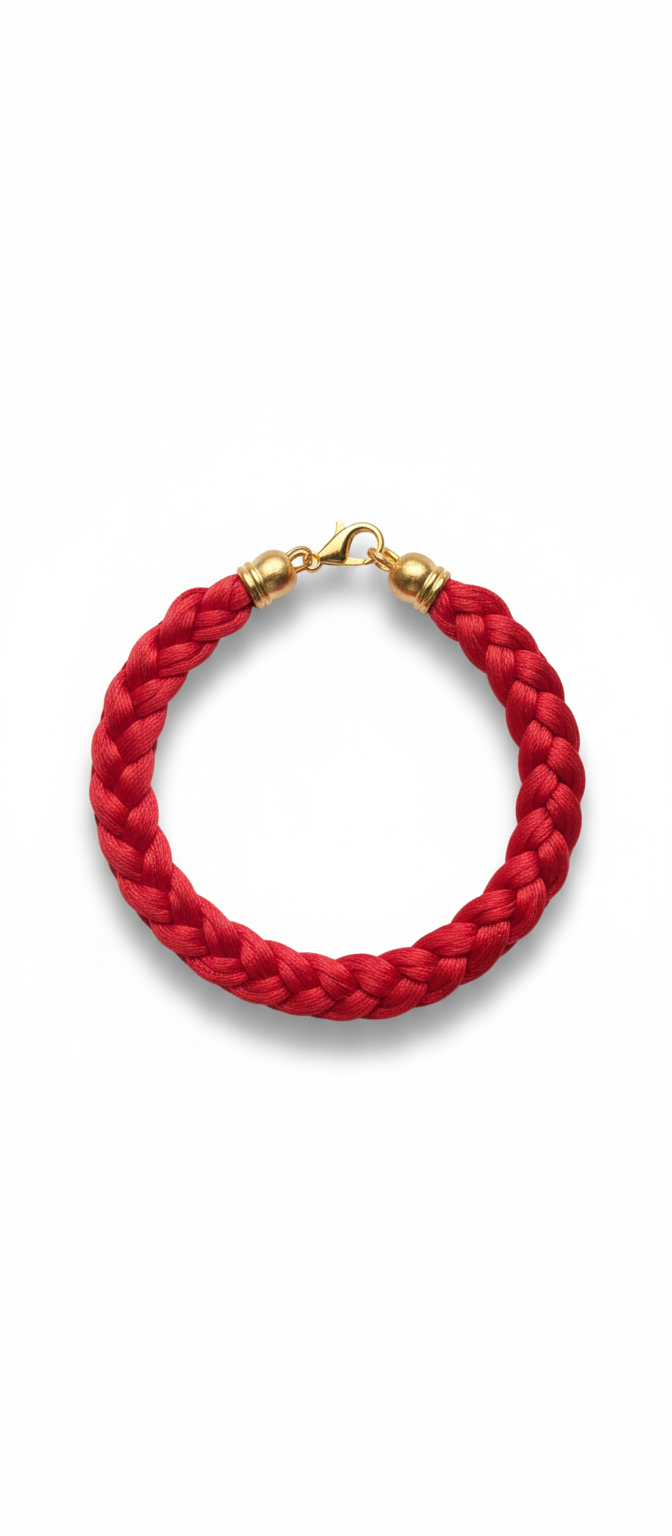Woven Red Rope Bracelet with Gold Plasp