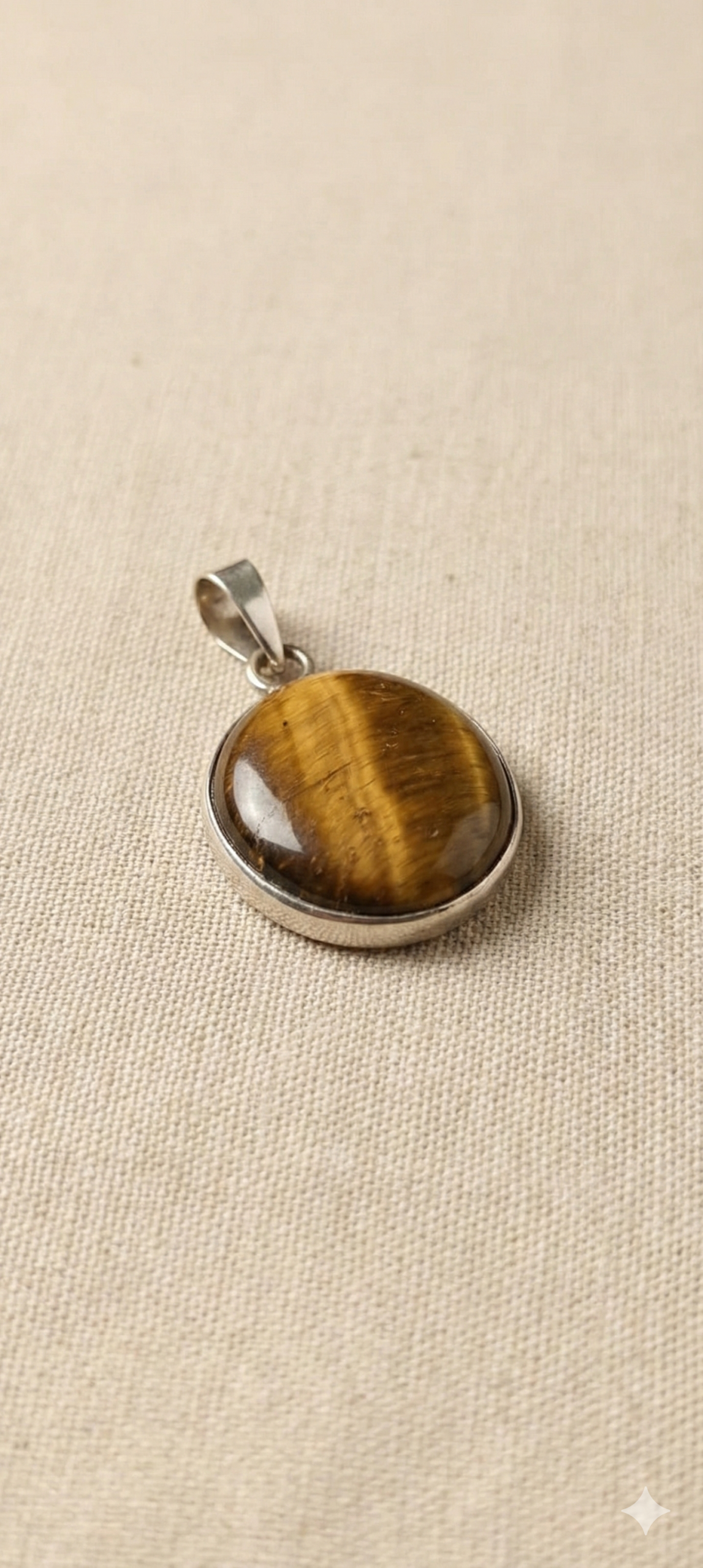 Natural Tiger Eye Stone Pendant – Original Tiger Stone Locket for Courage, Confidence & Protection (Silver Plated)