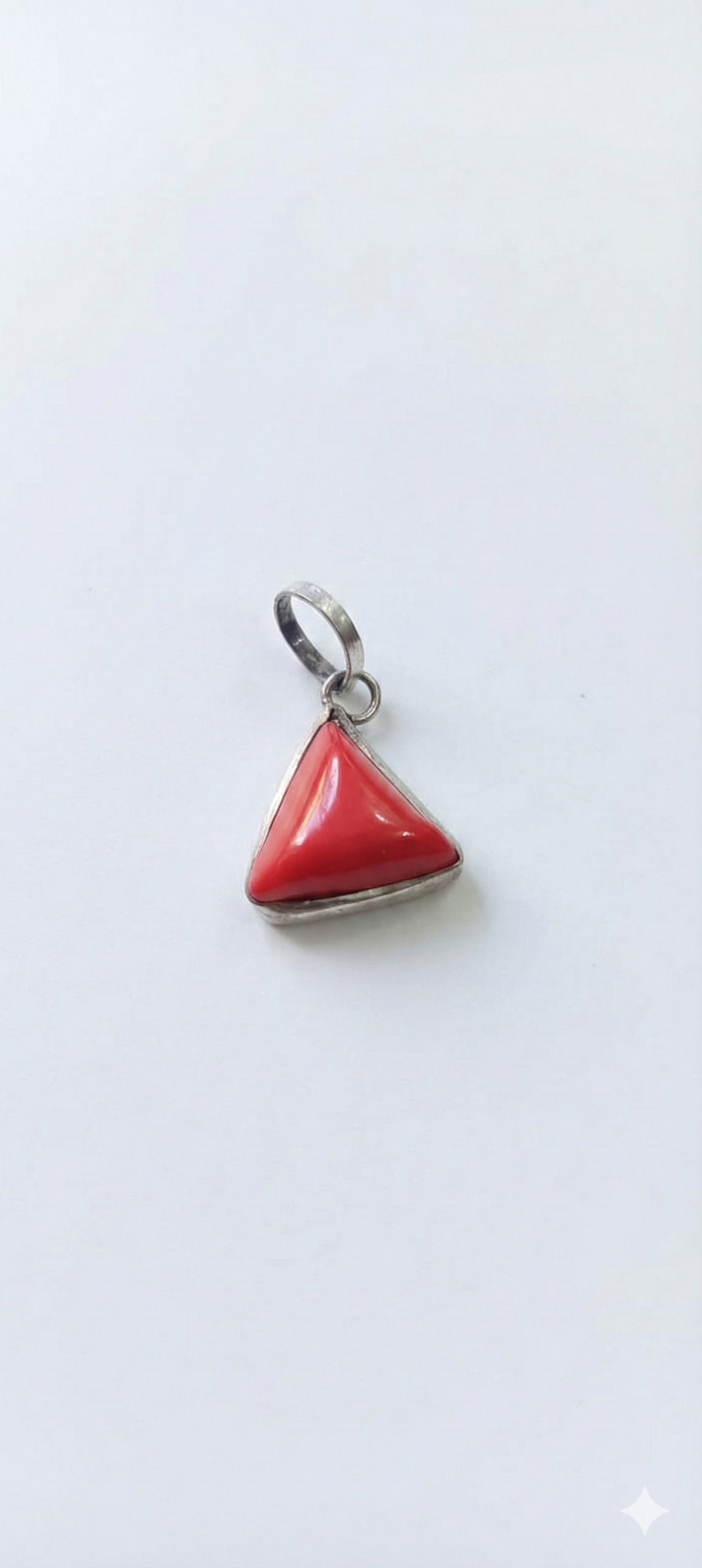Natural Red Coral Triangle Pendant – Original Moonga Stone Locket for Mars (Mangal) Energy & Confidence